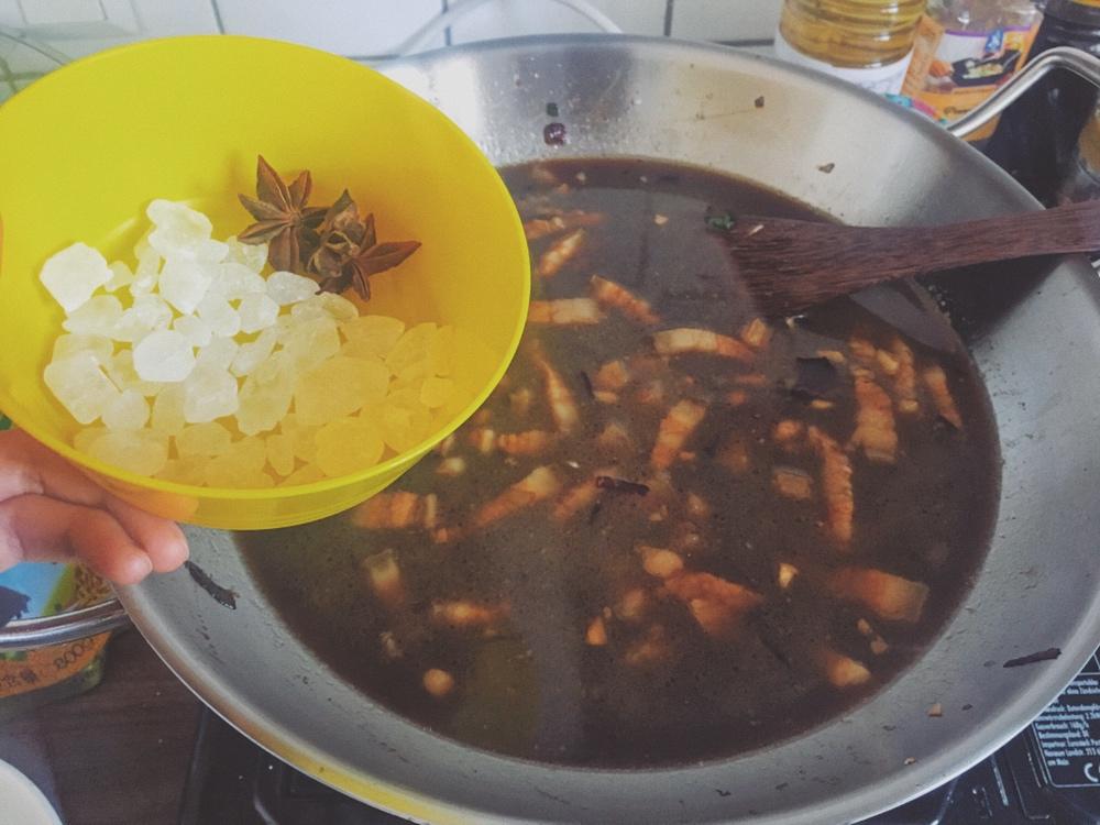 加入冰糖和八角,糖的用量看自己口味哈