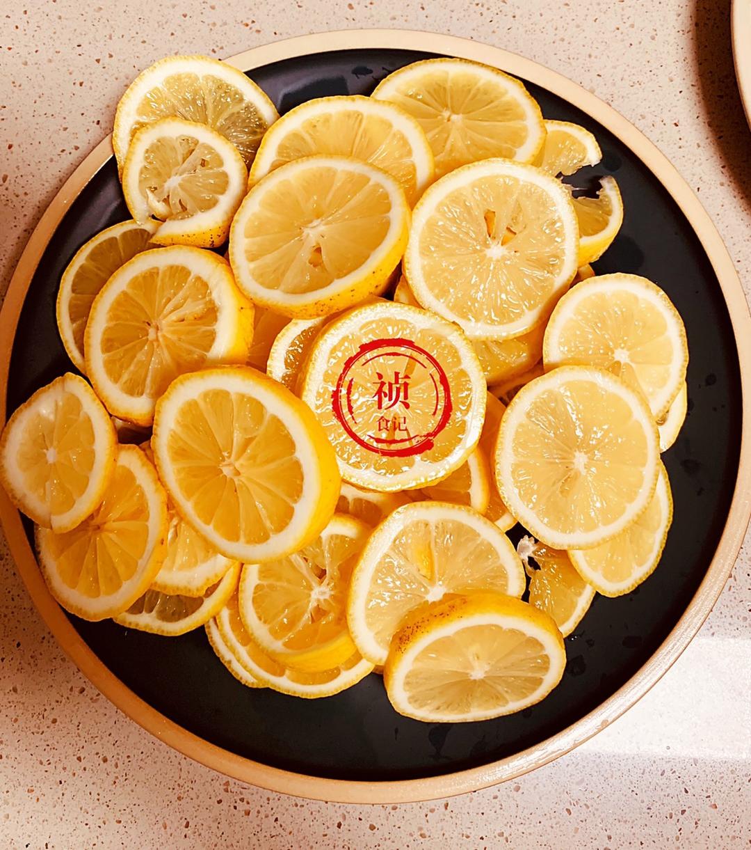 洗净后的柠檬切片,去籽。不去籽容易犯苦,柠檬片厚度随意,我比较喜欢有嚼劲的柠檬干,所以有点厚。