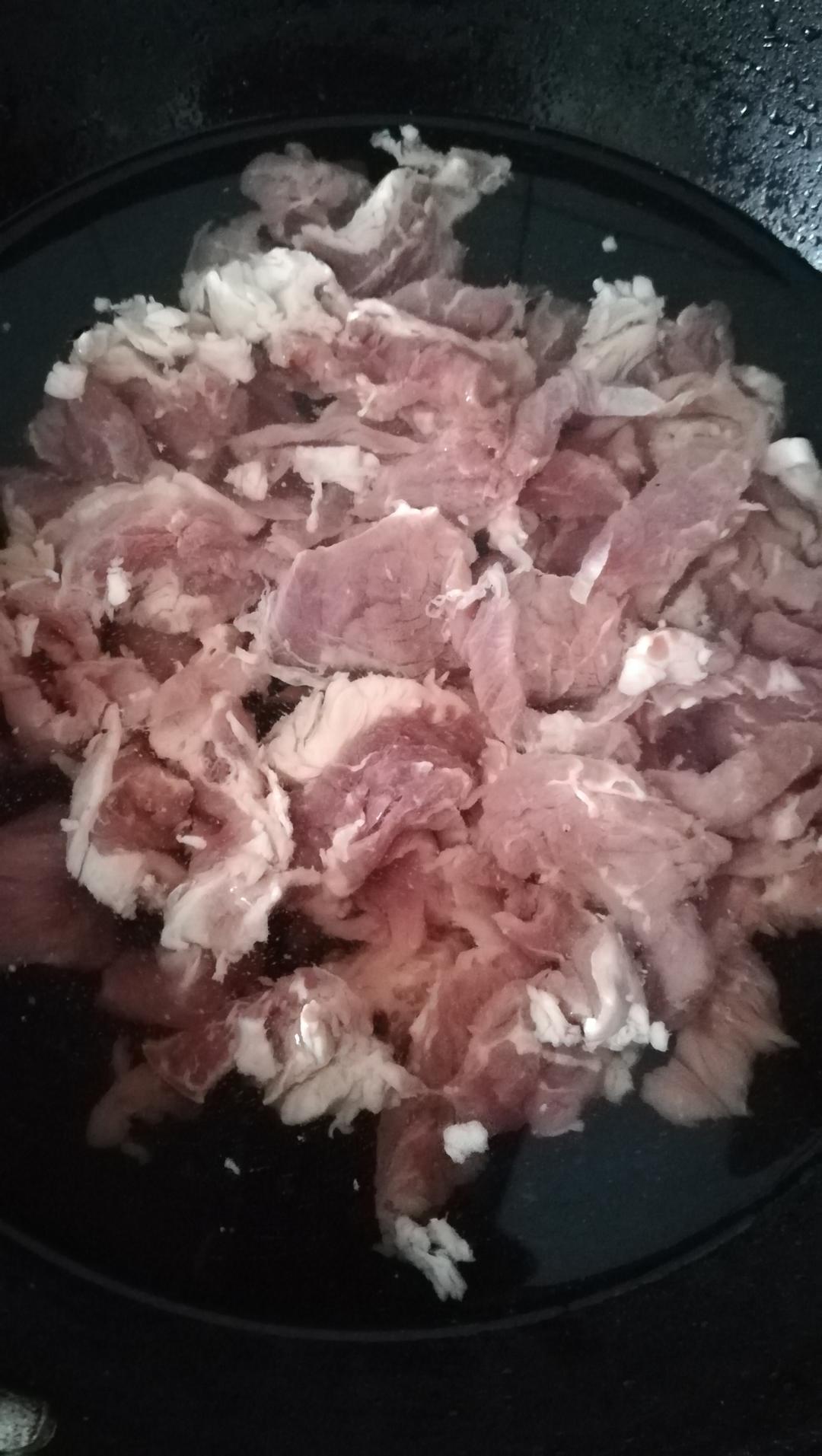 牛肉片冷水浸泡30分钟,冲洗血水2~3次