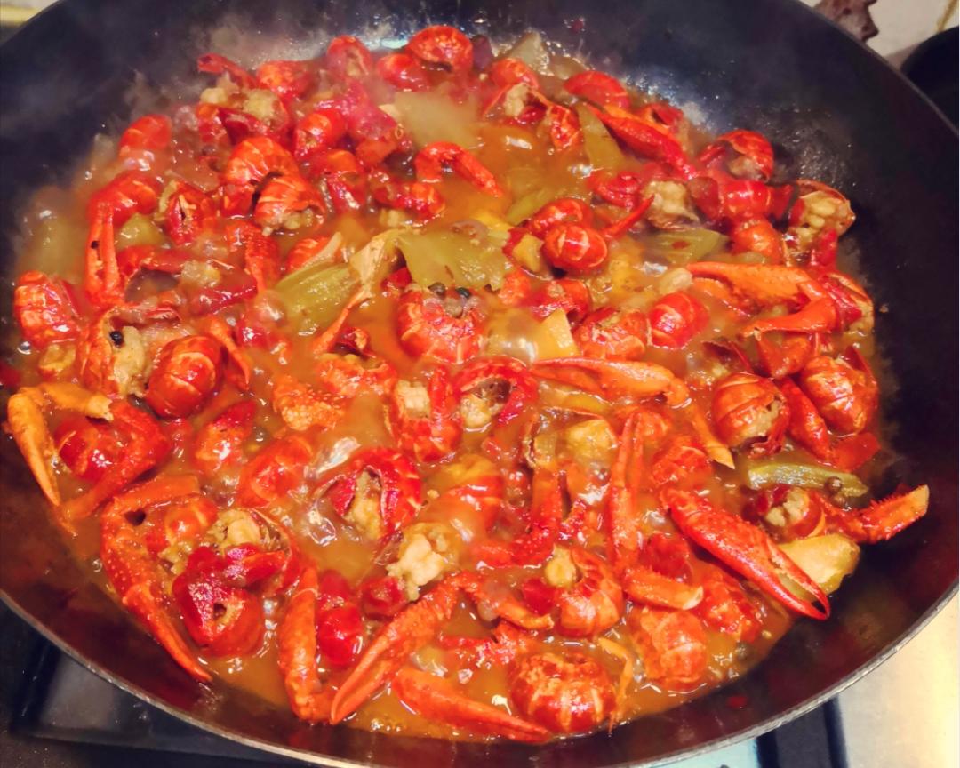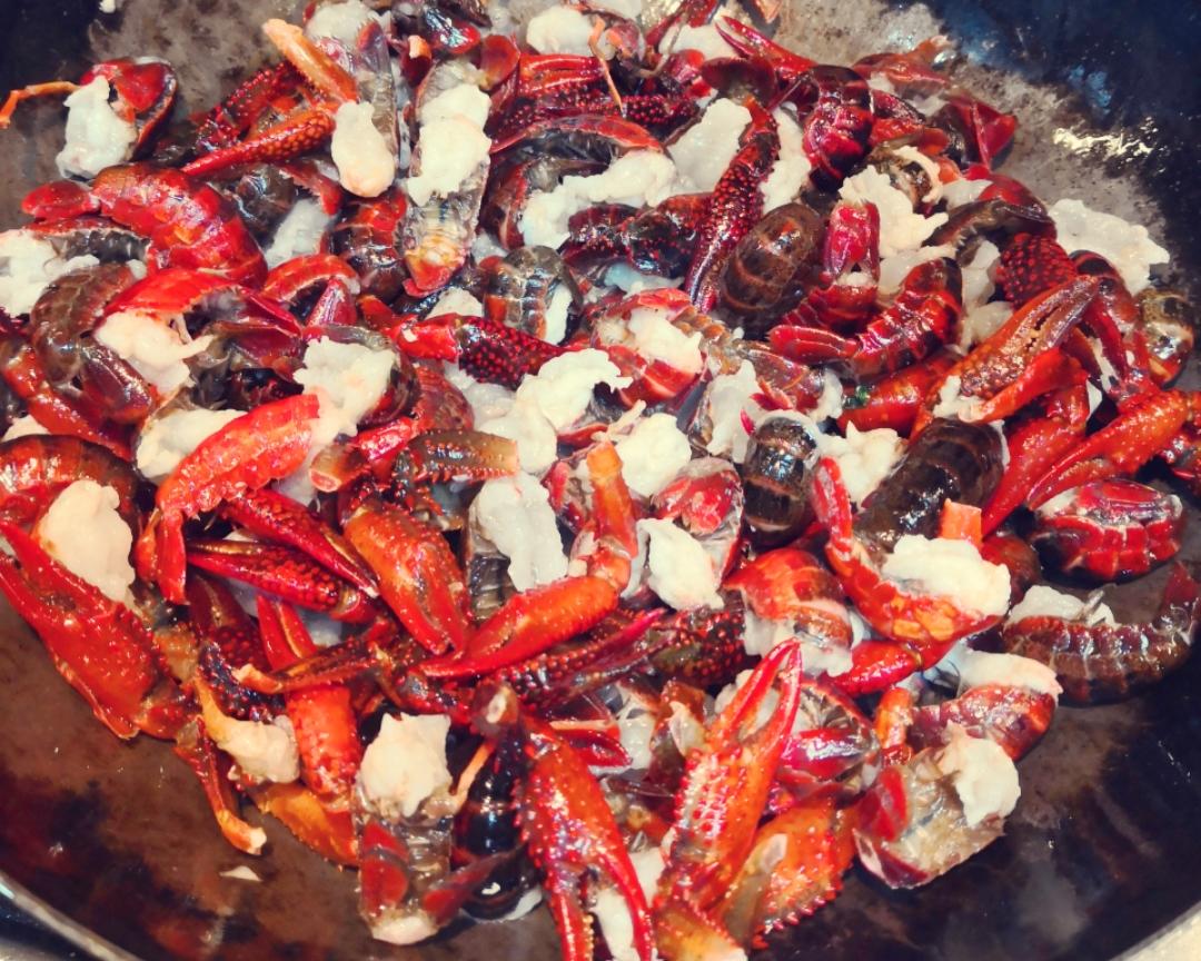 再加3平铲油,油热倒入小龙虾翻炒。