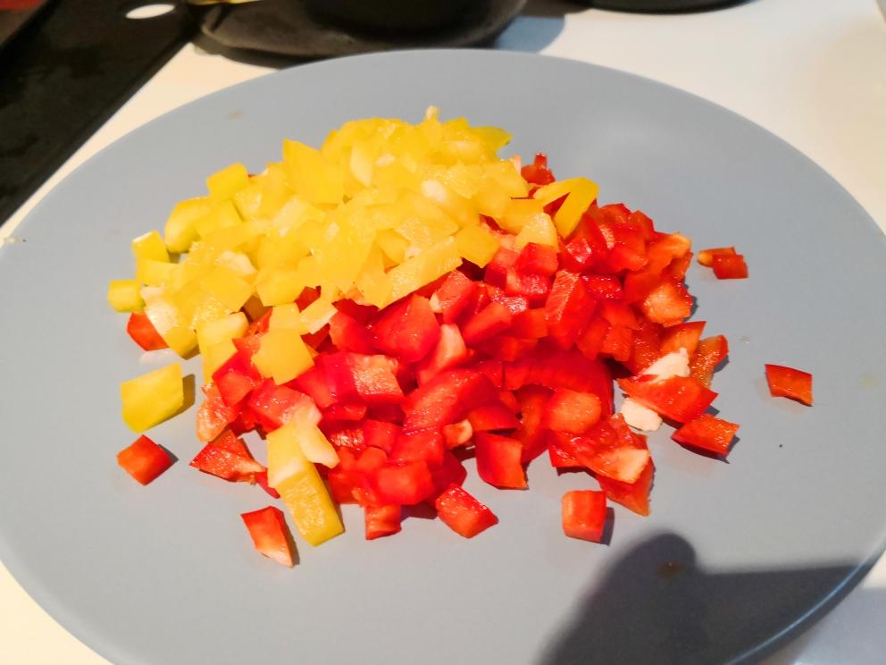 把椒们切成丁