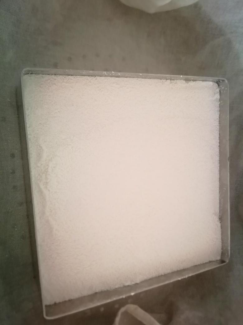 把筛好的粉先放一半平铺在慕斯圈里轻轻抹平,不要用力压,保持松散的状态,放一薄层芝麻糊粉或者用红豆沙做夹心再放剩下的一半米粉。也可以分一半米粉加抹茶粉或紫薯粉做成双色的