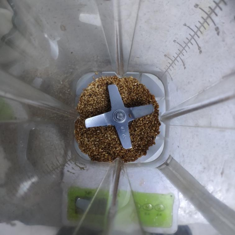 破壁机中先倒入30克亚麻籽,亚麻籽要第一个放