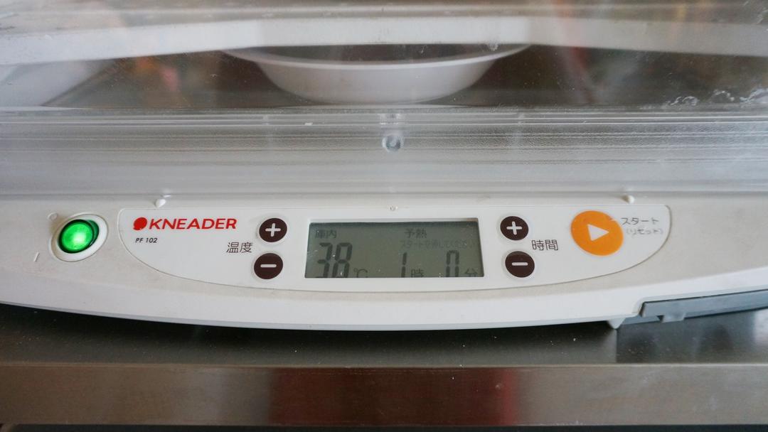 38℃,喷水或者放一碗刚开的水(主要是要那个水蒸气),发酵50分钟到1小时。