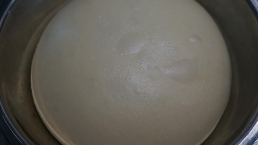 整形成团,放入盆中,盖上保鲜膜,28℃一发。现在是5月底,室温24℃左右,我都是室温发的。