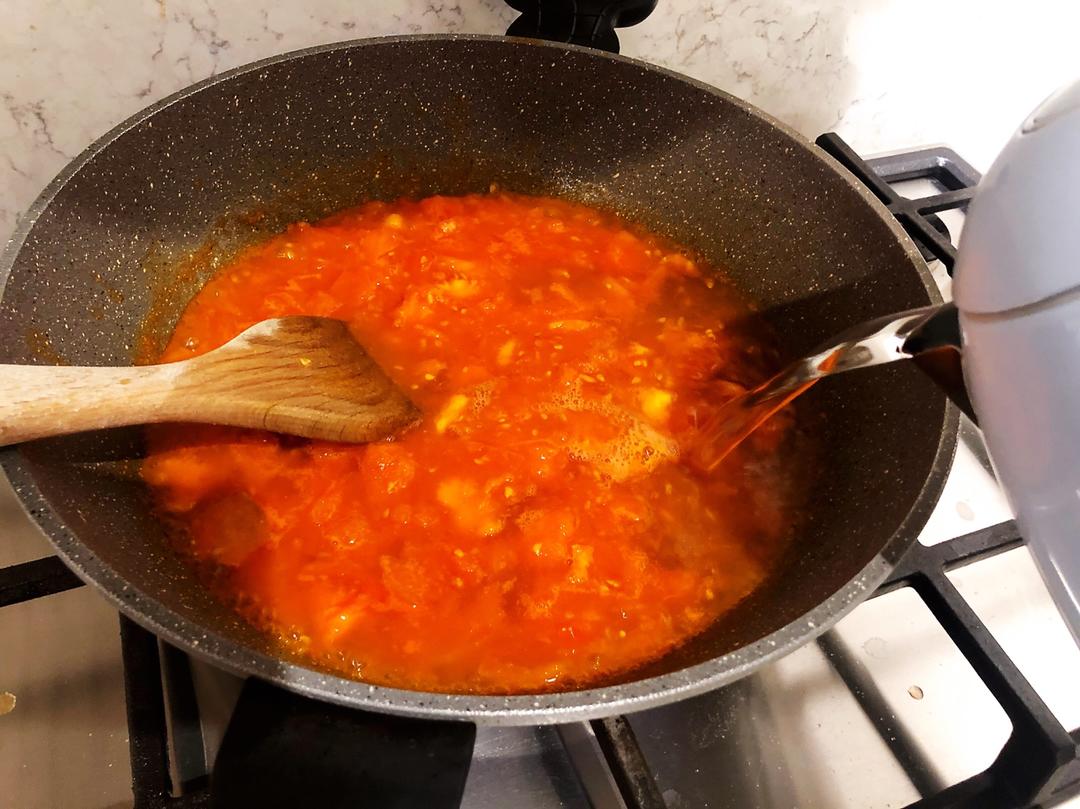 倒入番茄翻炒至其软烂