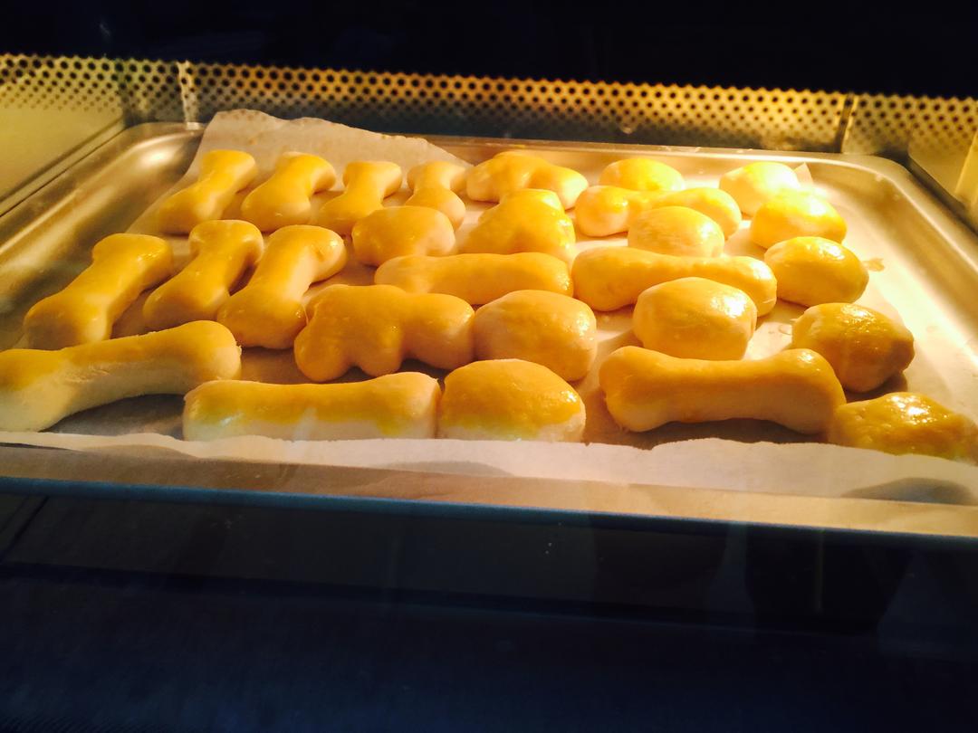 这是另外一半 做了卡通造型 也放进去儿此次发酵 不用开烤箱哈 就是放到里面