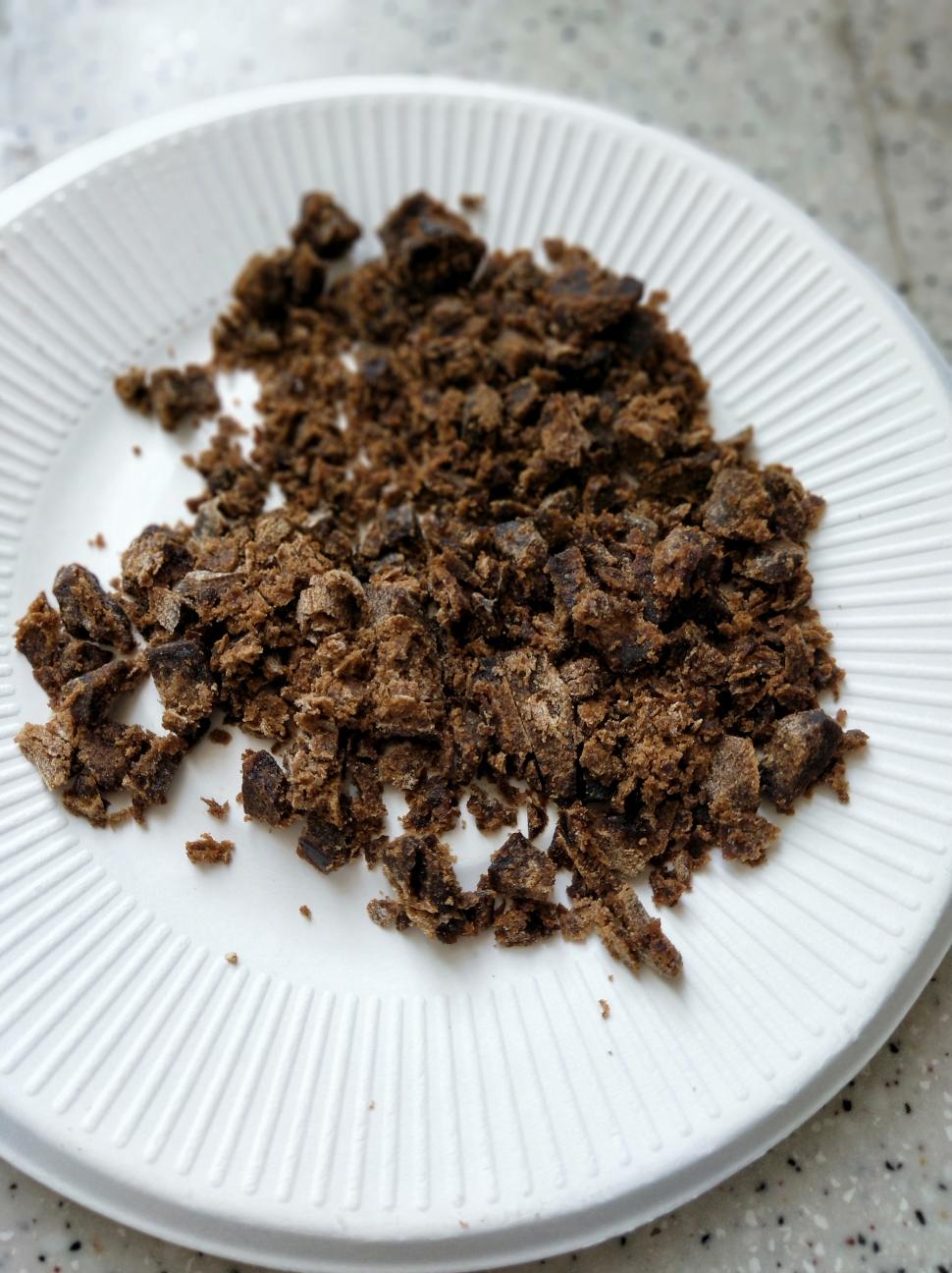 切碎,越碎越好,准备打蛋盆,打入鸡蛋液,倒入红糖,隔水40-50度不停搅拌,融化红糖和蛋液混合均匀