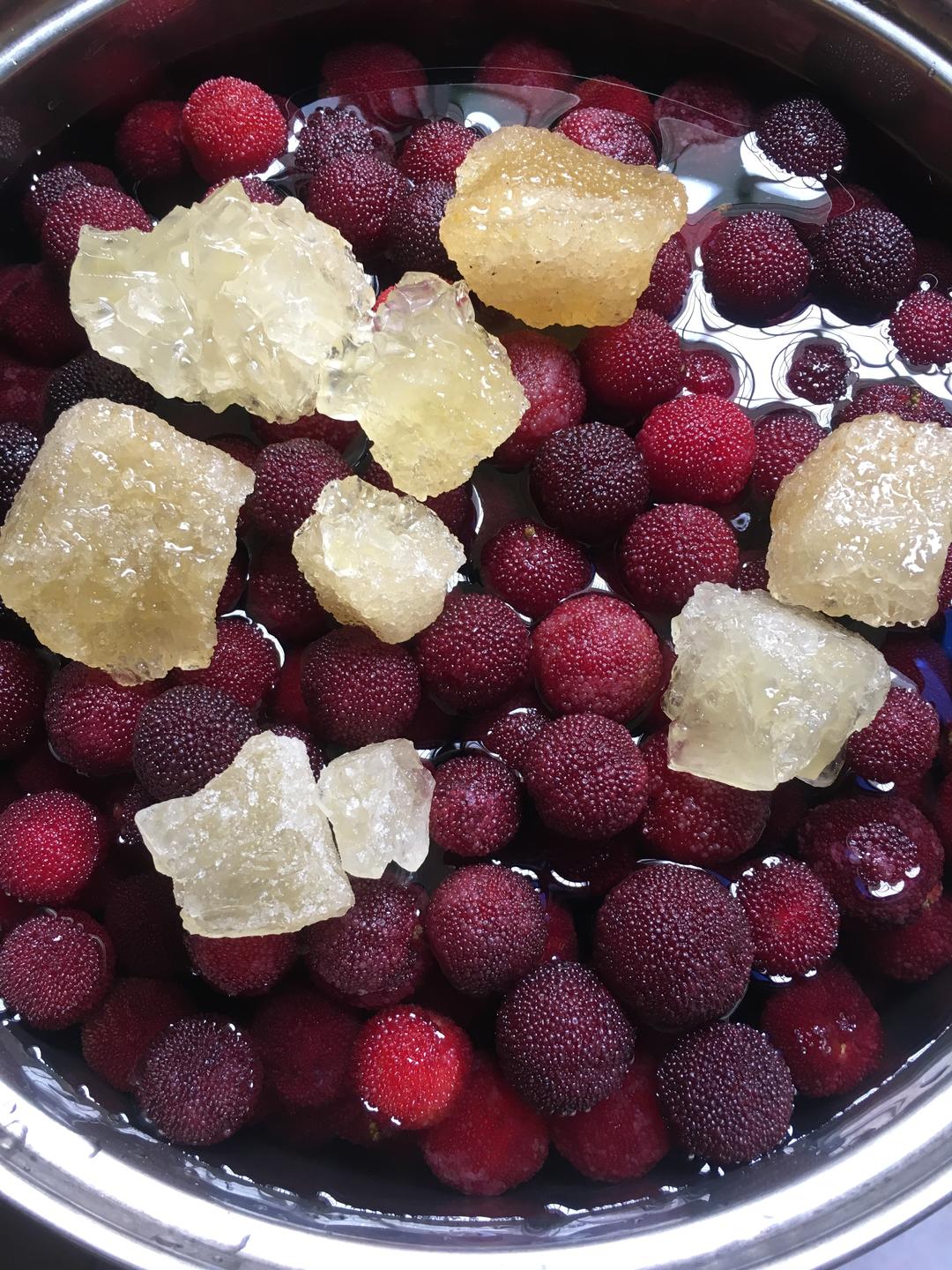 这是煮过后准备冷却的糖水杨梅,可以尝尝味道,觉得酸可以再放点冰糖,随着杨梅的煮开,杨梅的酸味会慢慢出来。