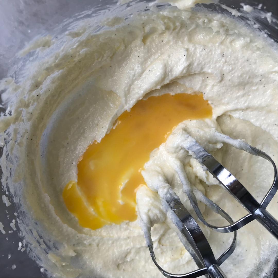 黄油体积膨胀,质地蓬松柔软~预热烤箱180度~