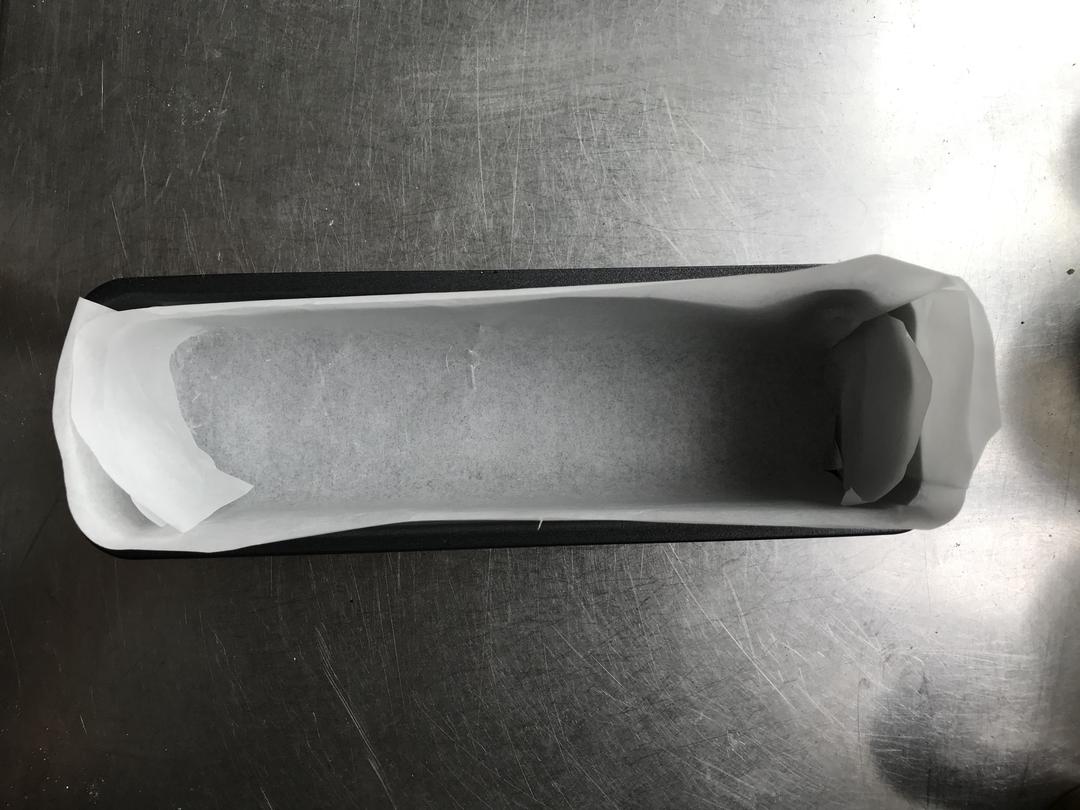 装入模具中,烘焙纸最好与模具平齐~