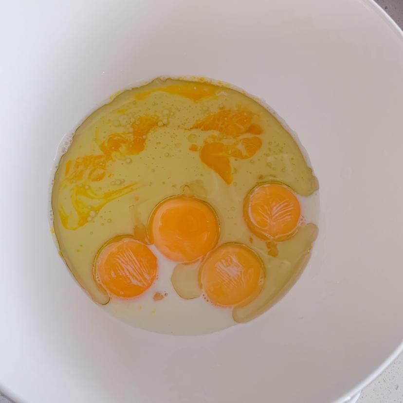 蛋黄里面加牛奶(过敏宝宝可以换成半水解奶粉或水),玉米油,Z字法搅拌均匀。