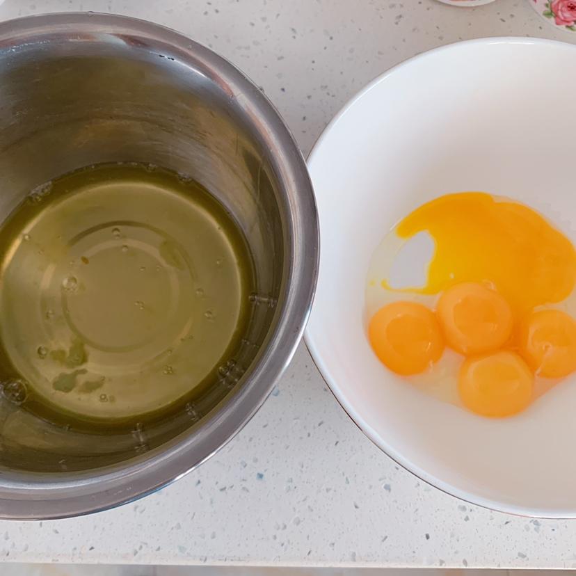 五个鸡蛋,蛋白蛋黄分离,盛蛋白的容器必须无水无油,将蛋白放进冷藏备用。