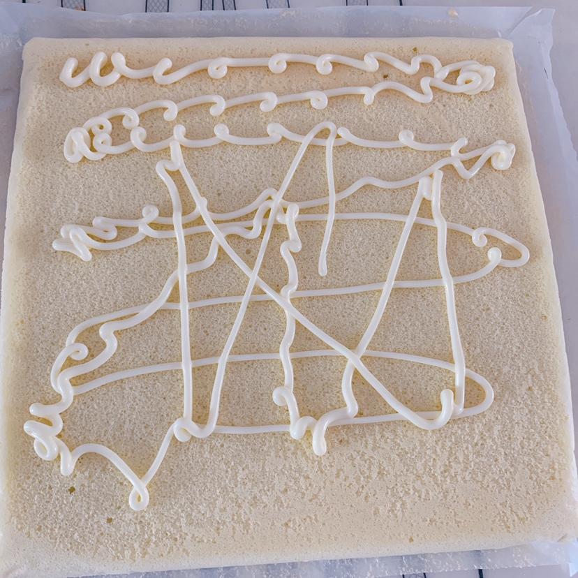 将蛋糕表面挤上沙拉酱,因为是给孩子吃沙拉酱没有放太多,大人喜欢吃的可以多放一点。