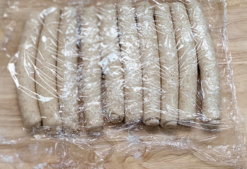 统一把所有面团卷好。