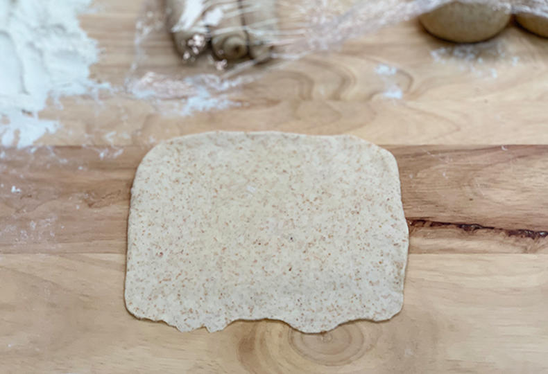 稍微整成长方形,然后把面皮下面擀薄。