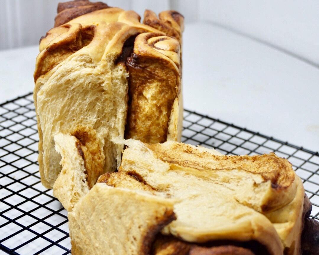 馅料部分:黄油软化能按到手指的那种 加入红糖和肉桂粉拌匀 抹在面片上