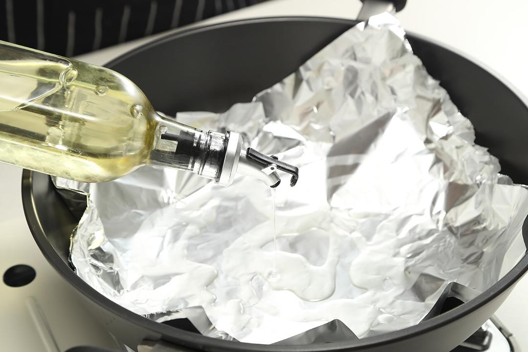 锡纸上倒少许的油。