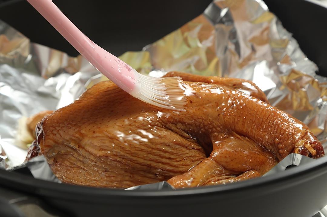 14、在鸡身上刷一层蜂蜜,烤出来的鸡更香嫩。