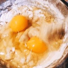 ❥打入两颗鸡蛋,和牛奶(开水)。