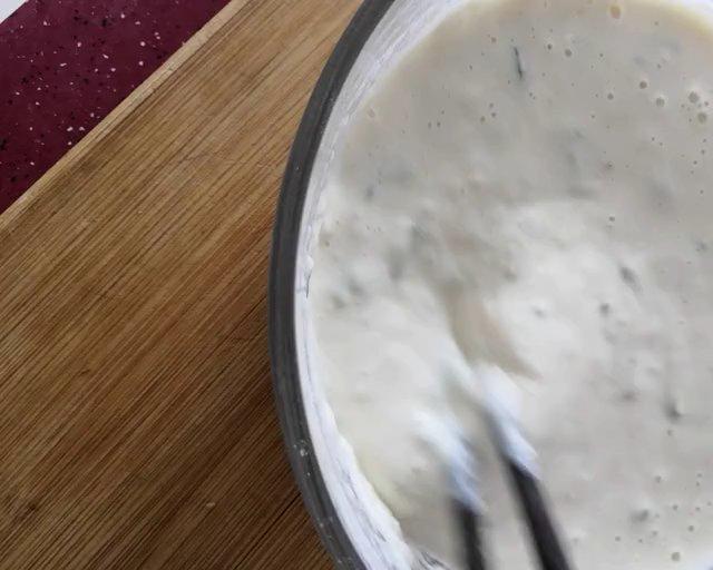 加水,搅拌至视频中的粘稠度。第一次做的话,可以一次一次的加水搅拌,以后熟悉了就能掌握量了。