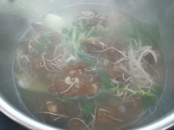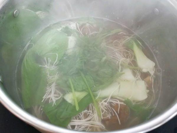 加入面条,煮至面条断生,加入青菜稍煮片刻