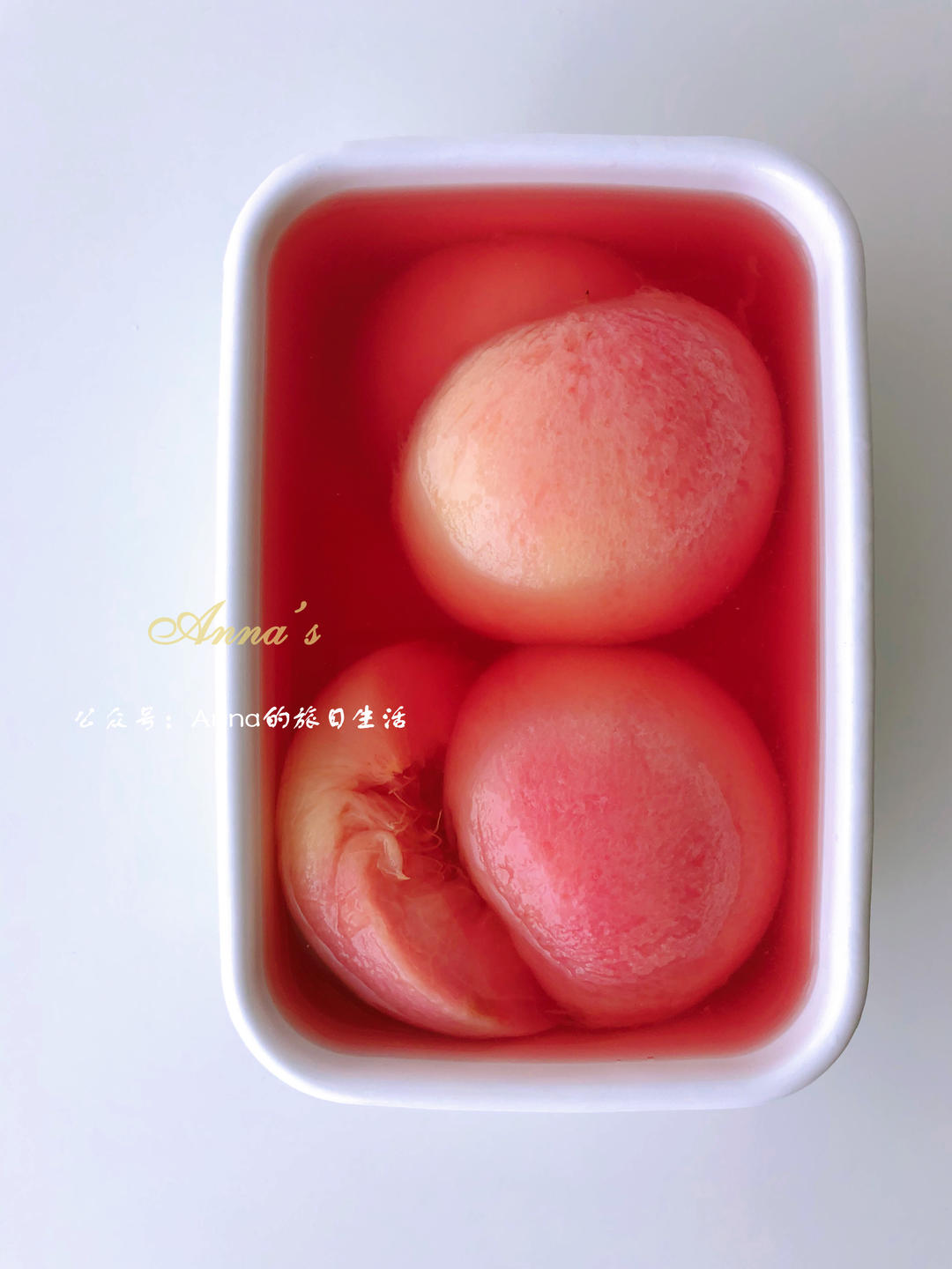 桃子糖浆里的粉色桃肉切块放在牛奶冻上做装饰。完成。