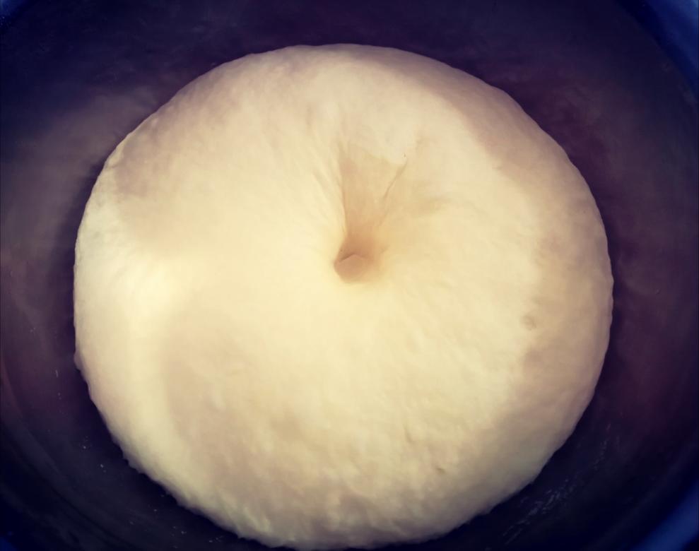 发酵状态,提拉面团能看见丰富蜂窝, 脉络网状,能闻到面团散发浅淡酸香。