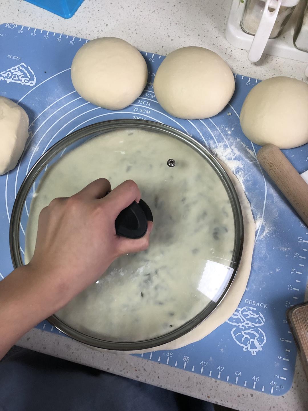 做饼方法参考上一个菜谱,陷的体积比饼胚还要大1.5-2倍。别省,能塞多少塞多少陷进去,我们永嘉麦饼特点就是大,陷多。这次做的一个直径约30厘米,因为我的电饼铛就只有这么大了,哈哈哈