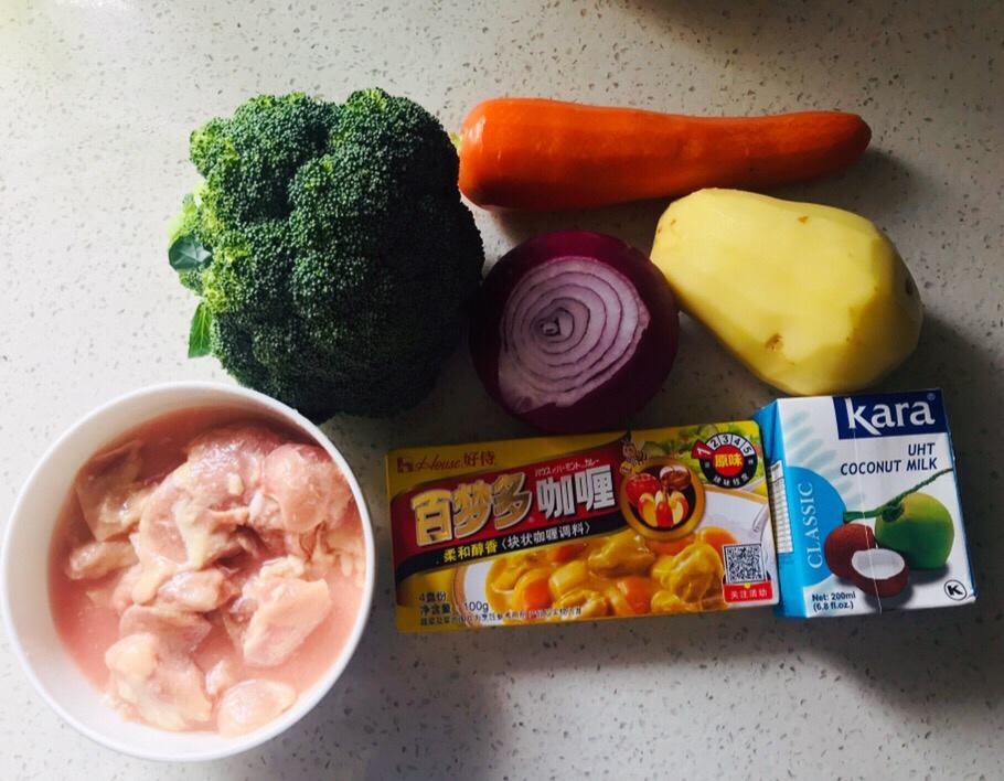 材料准备好,土豆胡萝卜去皮,鸡腿肉切块,用料酒淀粉和盐腌渍一下
