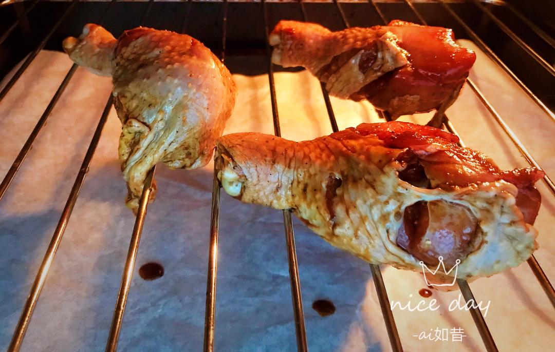 放生抽料酒老抽蚝油蒜姜一起把鸡腿腌上(两个小时以上)时间长点没关系,我是昨晚睡前腌的