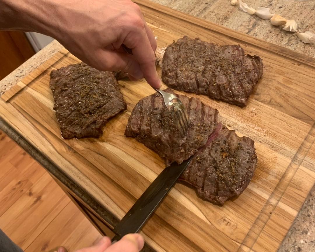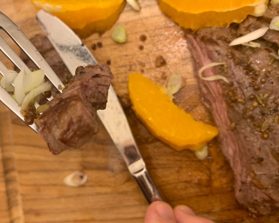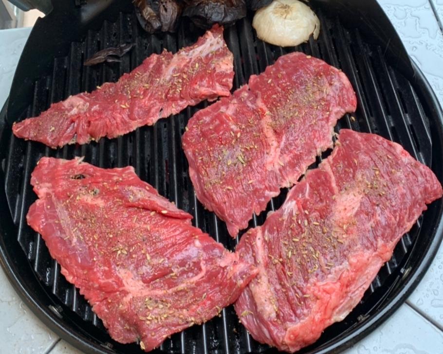 内裙牛肉(inside skirt steak),两面涂上香料