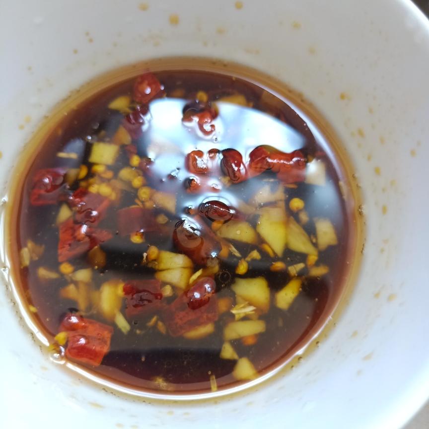 白糖,米醋,生抽,白开水,调匀,把蒜米和干辣椒放油里爆香,倒入糖醋水中,拌匀