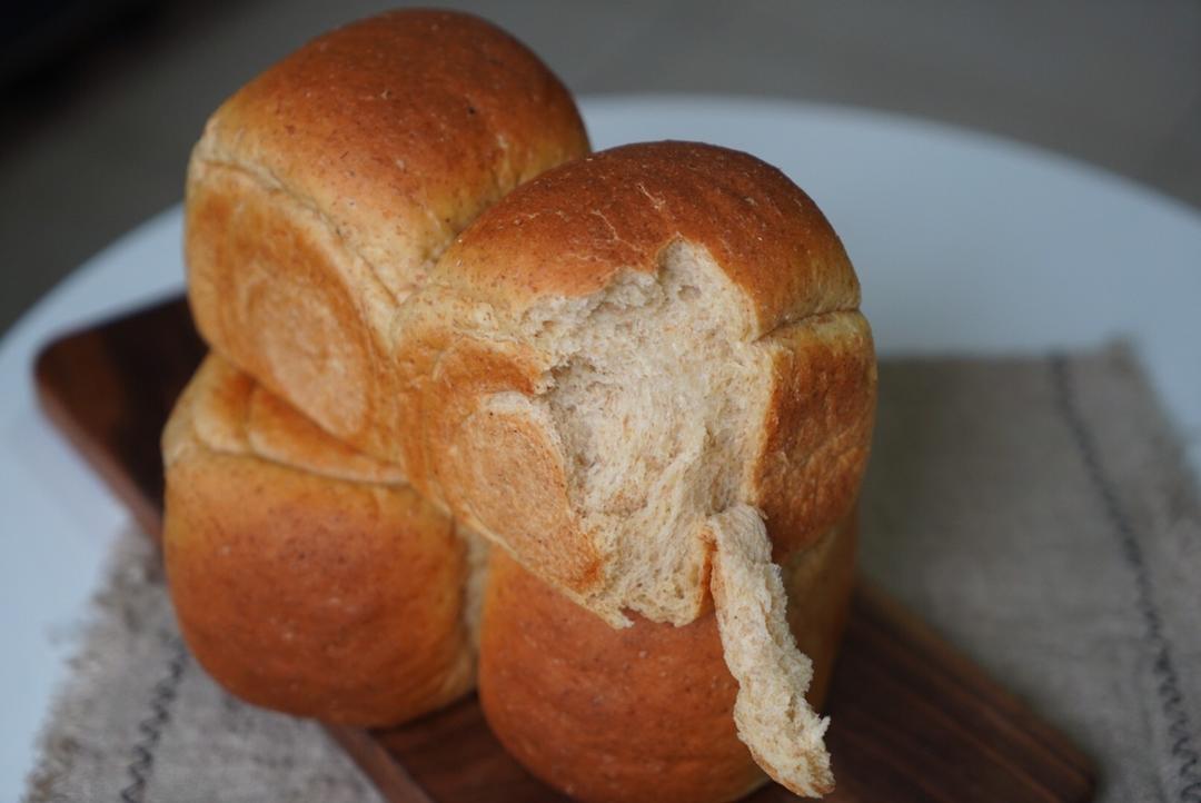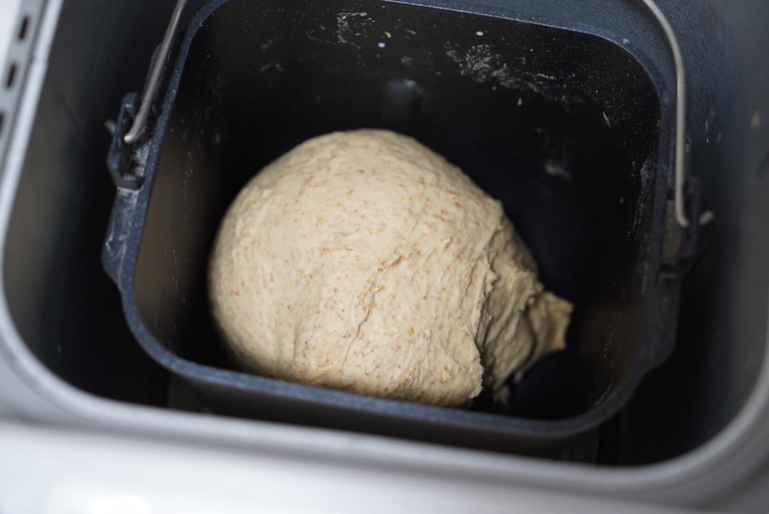 此配方我使用了100g金像全麦粉➕200g河套全麦粉 。因为我一直在使用金像的高筋粉,所以这次我也买了一包全麦粉。从图片中可以看出,这款全麦粉的麸皮非常的粗。而且含量应该非常高,所以我认为它并不适合100%使用。我使用了三分之一的金像,三分之二的河套全麦粉相搭配,感觉成品已经非常有全麦面包的粗糙感的视觉感受,并且面包的蓬松度高度我也是比较满意的