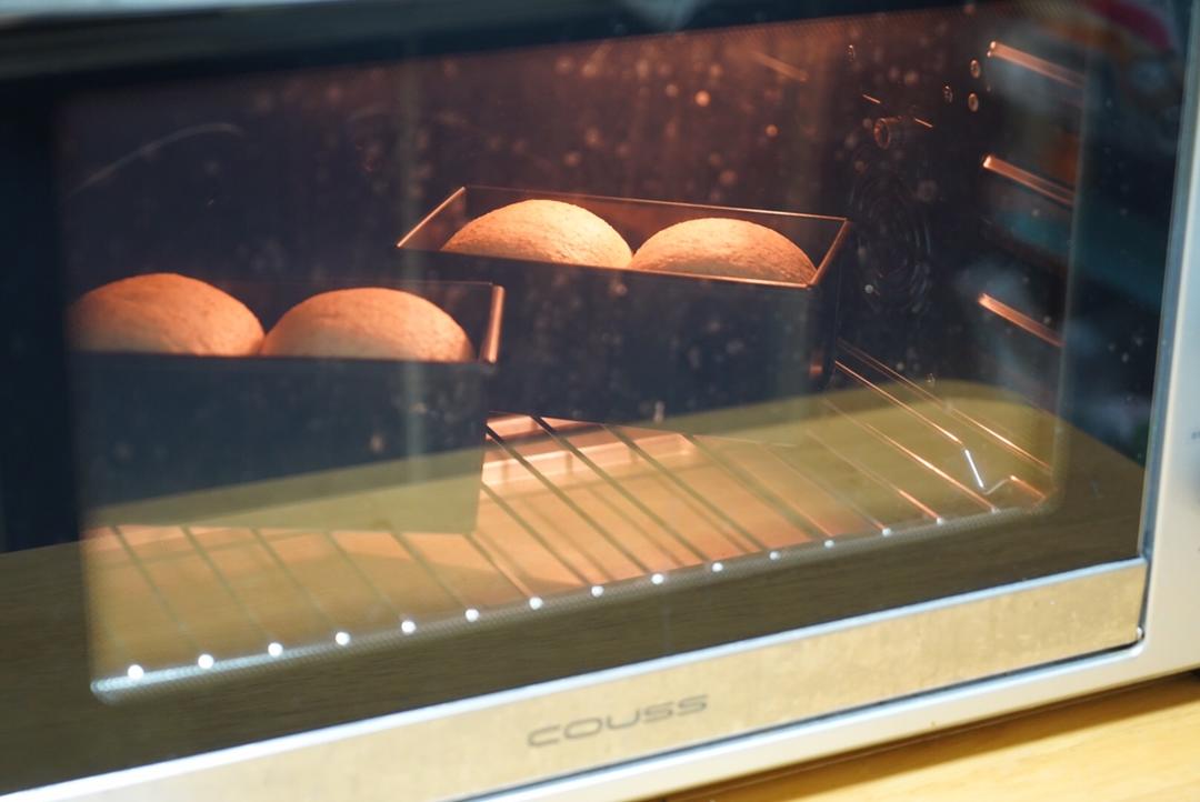 大约80分钟至九分满(请注意提前预热烤箱,我在发酵约65分钟的时候开始预热的)