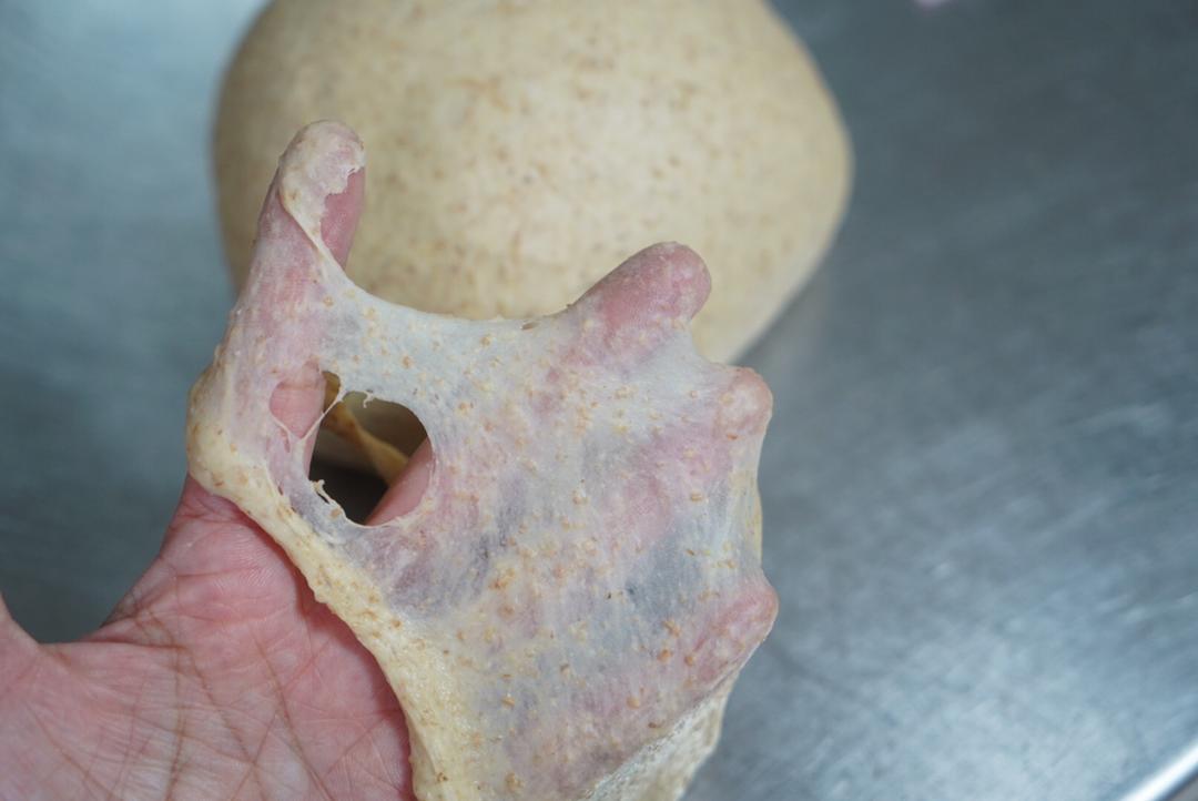 扯一块面团来看看,也是有手套膜的,就是没有高粉面团那么透,那么韧性