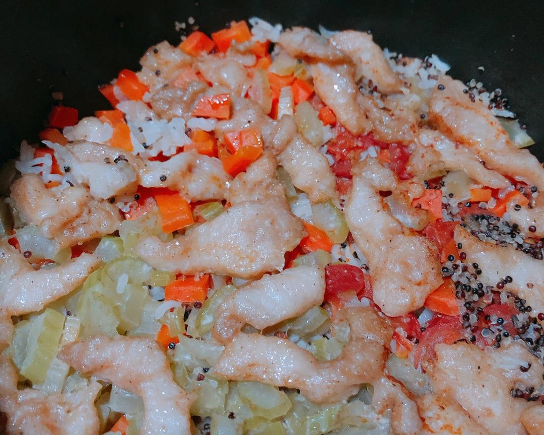 1、适合上班族的快手饭,营养也比较均衡; 2、我控制体重所以加了藜麦,不需要或不喜欢可以不用加; 3、蔬菜虽自己喜好放,尽量选择水分少的,像豌豆粒玉米粒之类的我都试过; 4、鱼柳也可以换成其他肉类,只不过我试过的肉类里面还是鱼柳最嫩啊哈哈~ 5、以上是我们仨人的饭量; 6、再啰嗦最后一句,菜和肉的量都可以随各自喜好调整量,但是这毕竟是主食为主,不要做成了焖菜😂