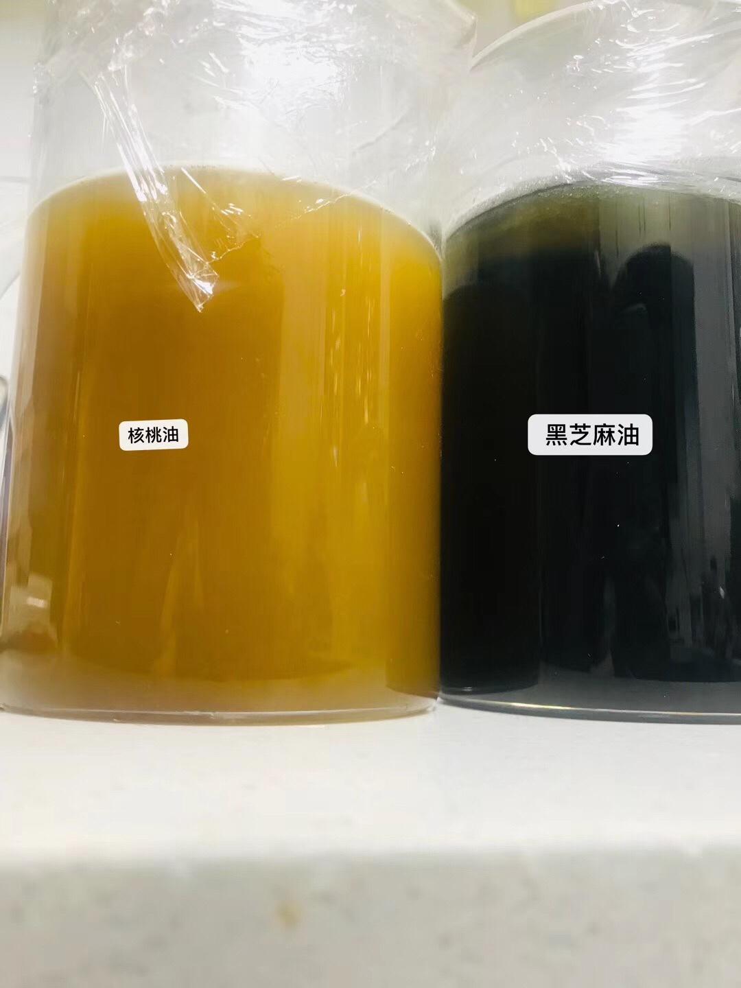 沉淀第7天的核桃油,已经干净了很多。核桃仁沉淀在最下面了!