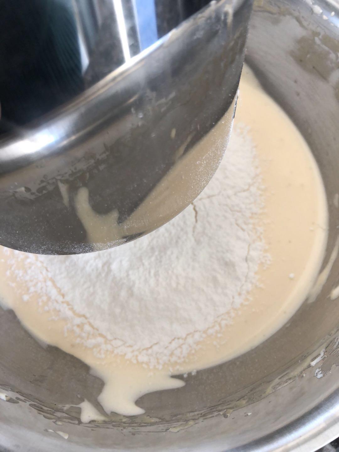 同时在打发好的蛋液里筛入低筋面粉