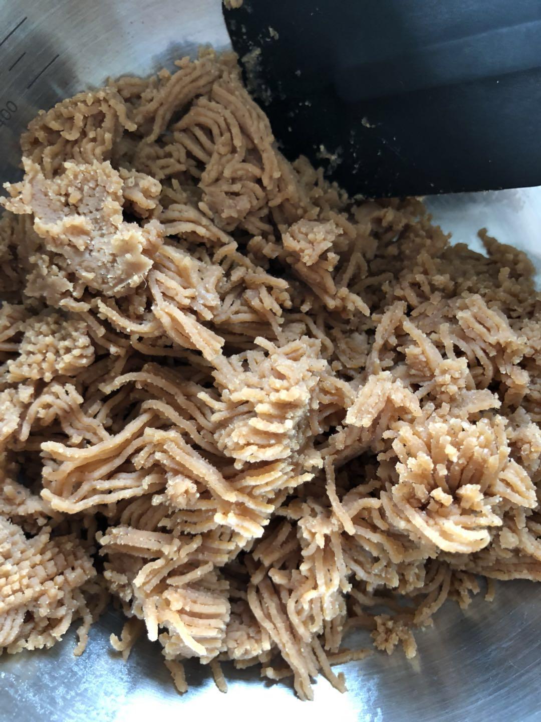将栗子泥过筛(目的是为了让栗子泥软下来,方便之后拌入打发的淡奶油)