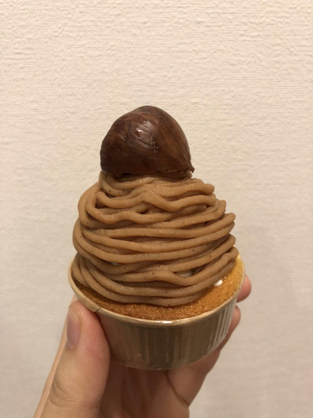 将20的栗子奶油酱通过特别的裱花嘴挤出,从下往上,尽量覆盖住下面白色的淡奶油