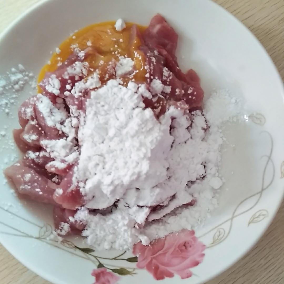 打一个鸡蛋黄和加入玉米淀粉,放少许盐,少许料酒