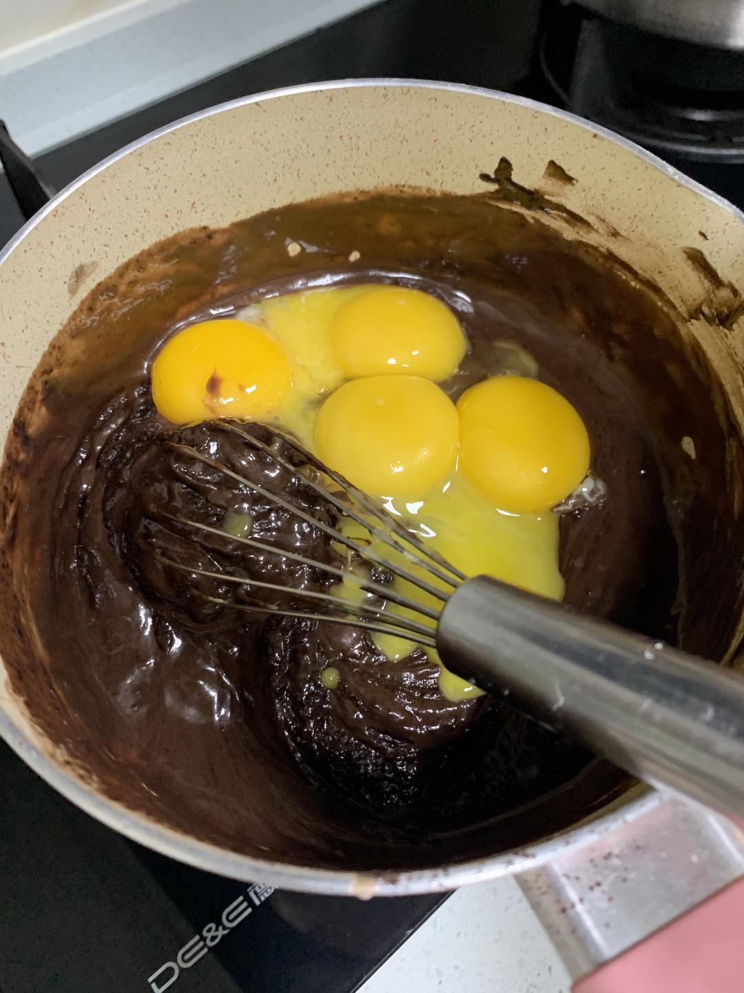 分三次加入巧克力糊拌匀