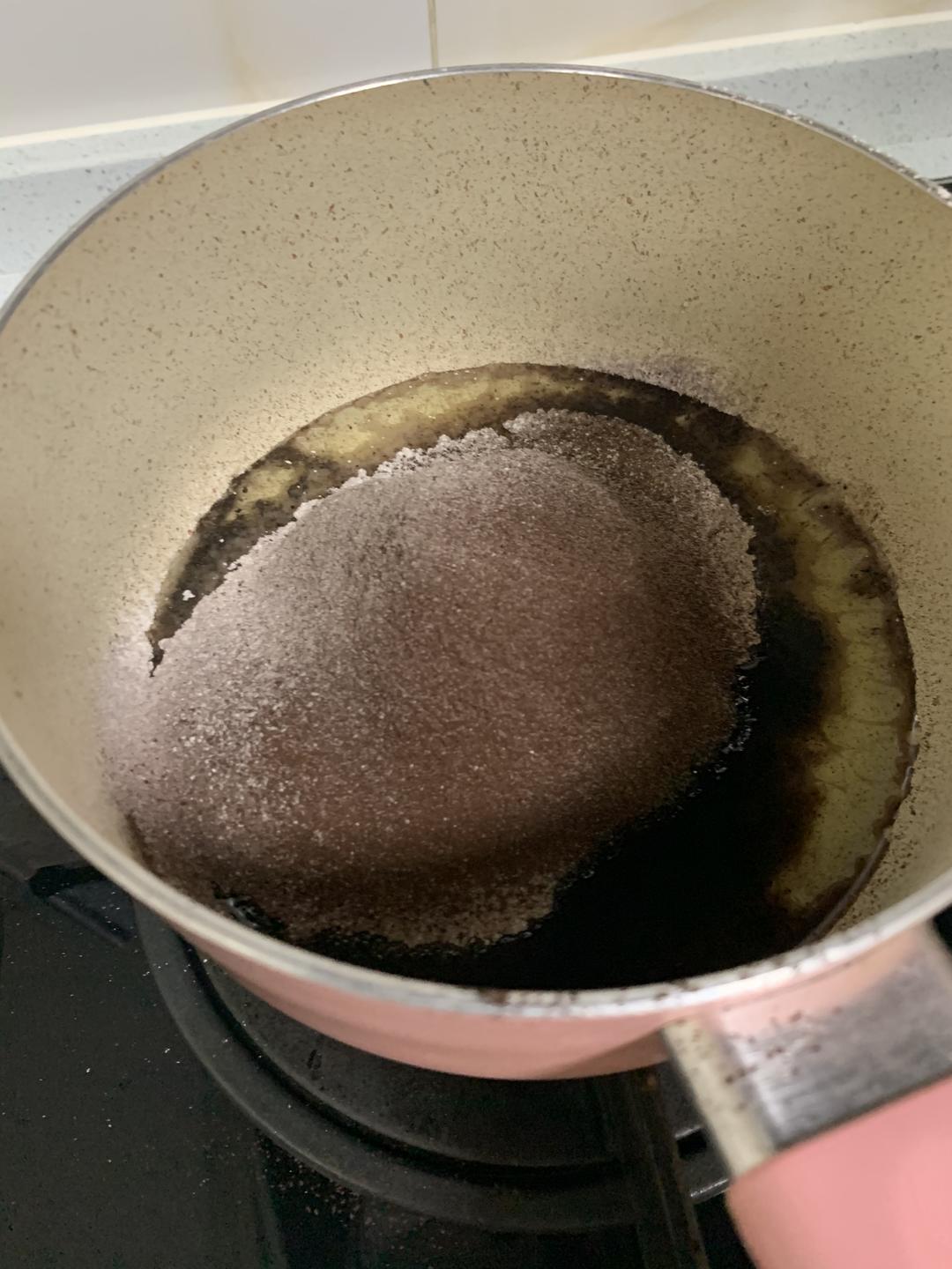 可可粉,玉米淀粉,低粉过筛至热油搅拌均匀