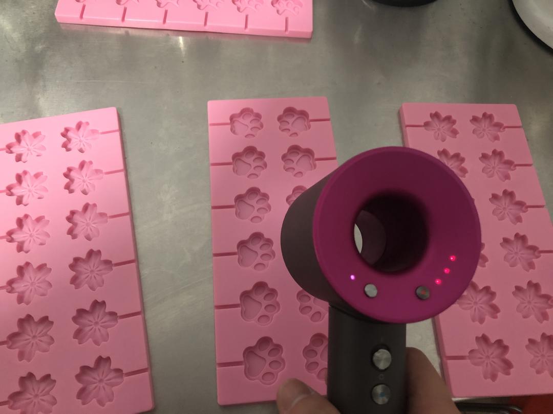 趁着锅里还在熬糖,用电吹风吹干模具(确保模具干燥),潮湿的模具会让糖直接变黏手