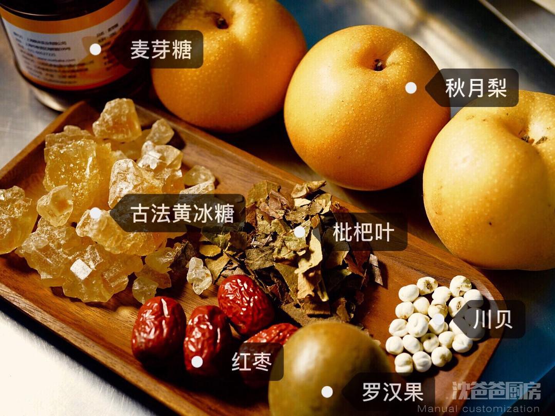 罗汉果掰成小块、枇杷叶、红枣撕开、川贝粉一起倒入炖锅