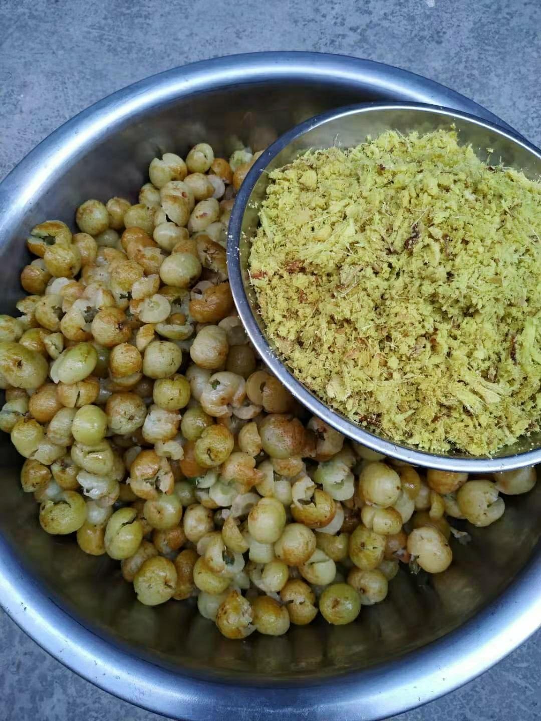 南姜捶好后,接着把晾干的油甘逐个轻力捶破~