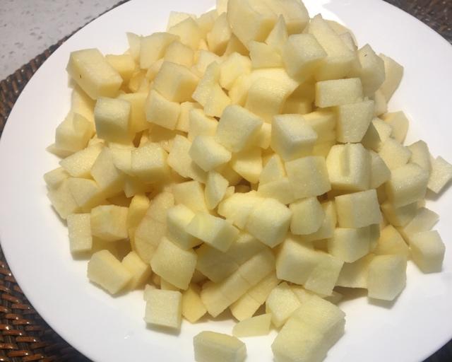 苹果去皮,切成0.8毫米的小块;