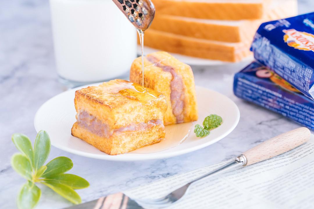 淋上蜂蜜或者酸奶,芋泥西士多就可以开吃了!