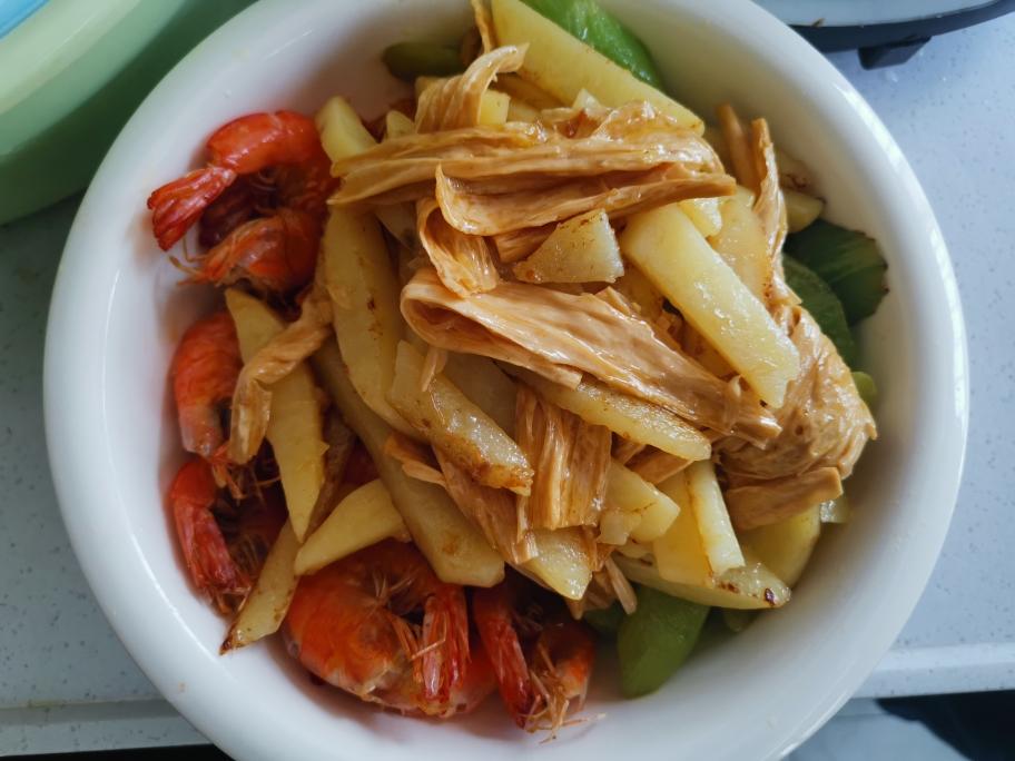 土豆,莴笋,腐竹也先炸一遍(8分熟)